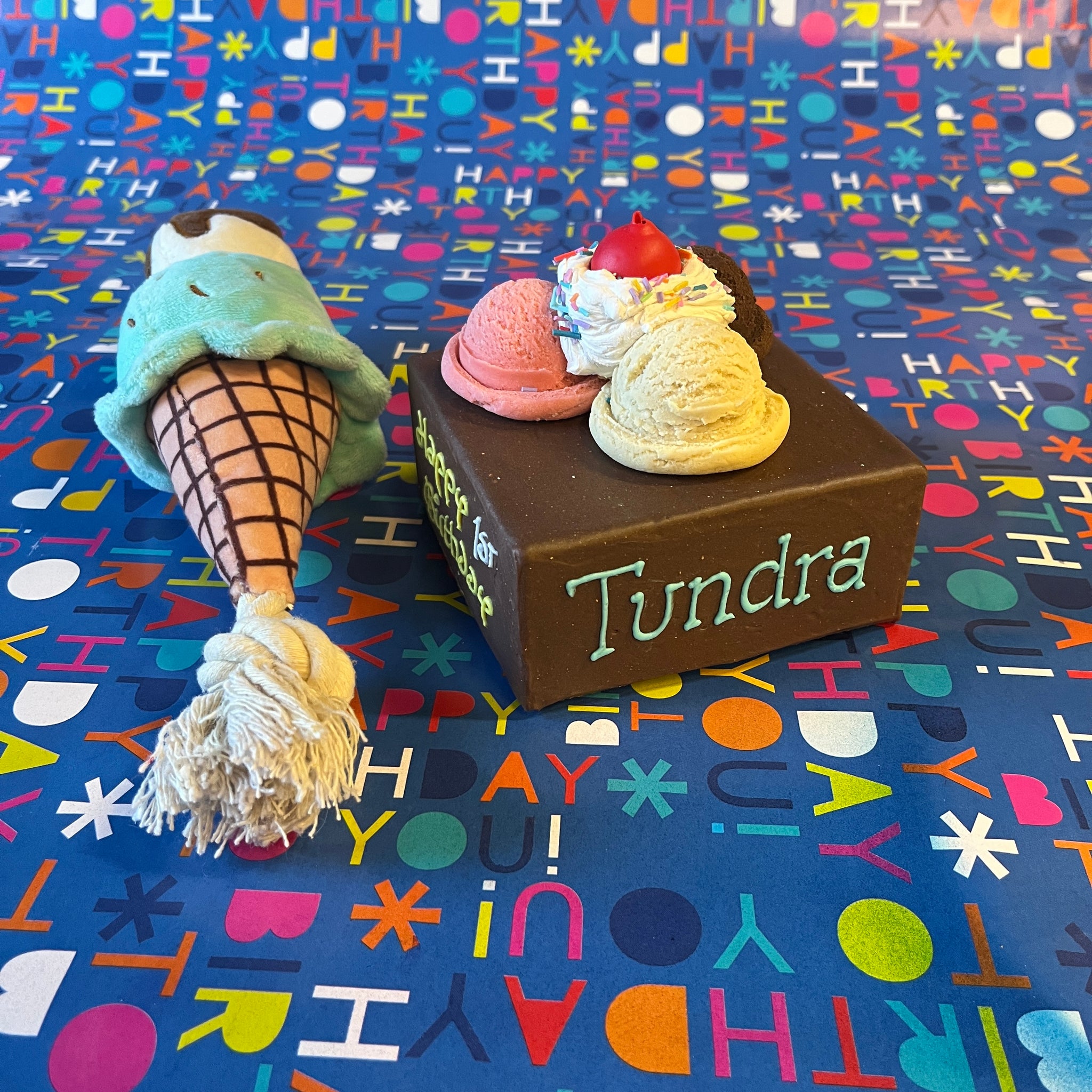 The A La Mode features your pup's birthday cake topped with three scoops of our yummy Neopawlitan™ Ice Crumb Cakes, homemade sprinkles, and the cutest little cake cherry in the history of the world. A La Mode Dog Birthday Cake comes in two base colors, carob or white.
